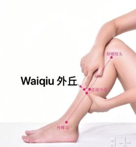 Le point Waìqiū (外丘穴) fait partie de ces points. Il se trouve sur le méridien de la Vésicule biliaire (胆经), un trajet qui traverse les flancs et monte vers la tête. Quand il est bloqué, il peut causer raideur cervicale, maux de tête et irritabilité.