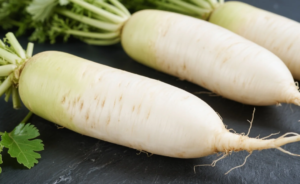 • Le radis blanc : en médecine traditionnelle chinoise, on dit qu’il aide à “nettoyer les poumons” et à faire circuler les sécrétions. En langage simple : il aide à dissoudre et évacuer le mucus.